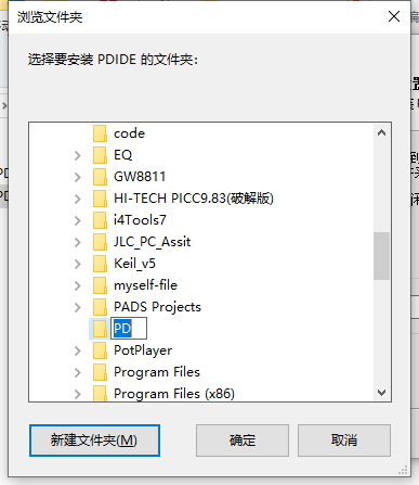 ③ 我这边选择的安装盘为D盘,在下面新建一个文件夹取名为“PD”,然后将软件安装到这个PD文件夹里面。如上图所示。