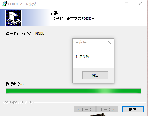 ⑤ 在安装的过程中出现了注册失败的情况,如上图所示,此时需要点击“取消”结束流程。
